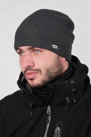 Prodloužená antracitově šedá pánská zimní pletená čepice