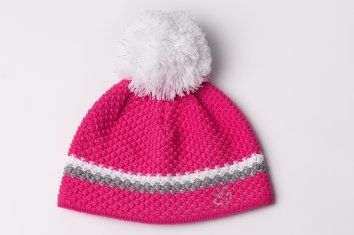 Dětská svítivě růžová zimní čepička s bambulí pro holčičky