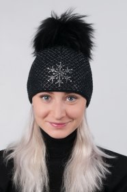 Černá dámská zimní pletená čepice bez bambule je ozdobena kovovým logemKód 1: SF/BB 36